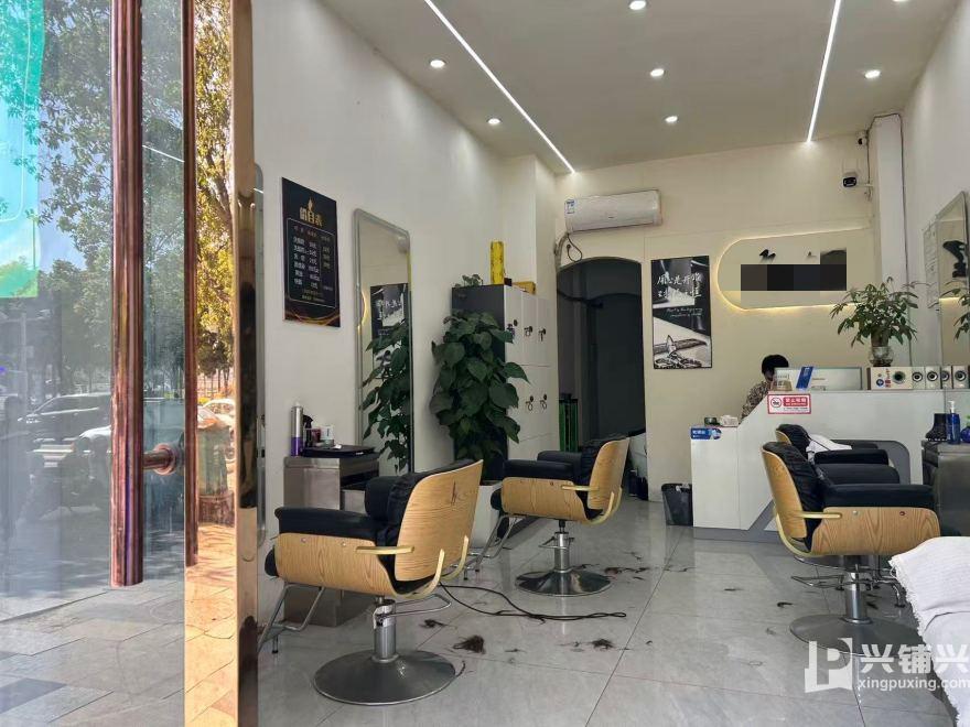 2、店铺开间大、装修新、门前无遮挡物、招牌显眼、目前经营的是美发店、有独立卫生间、储物间、布局合理、门面方正;